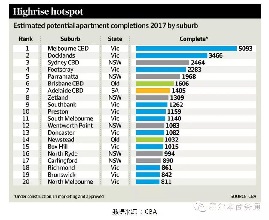 澳联邦银行发布的最新地产报告Commbank Property Insight显示,在墨尔本和布里斯班的带动下,澳大利亚正迎来史上最大规模的公寓建设热潮。