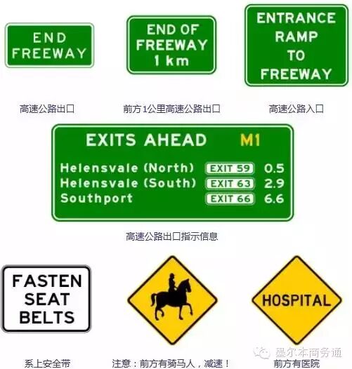 时近圣诞和新年,澳洲正迎来中国旅客的新高峰。 中国驻墨尔本总领馆经商室特搜集转发澳大利亚常见交通标识的中文图释(维州为例,各州稍有不同),供广大中国旅客,特别是自驾游旅客参考。